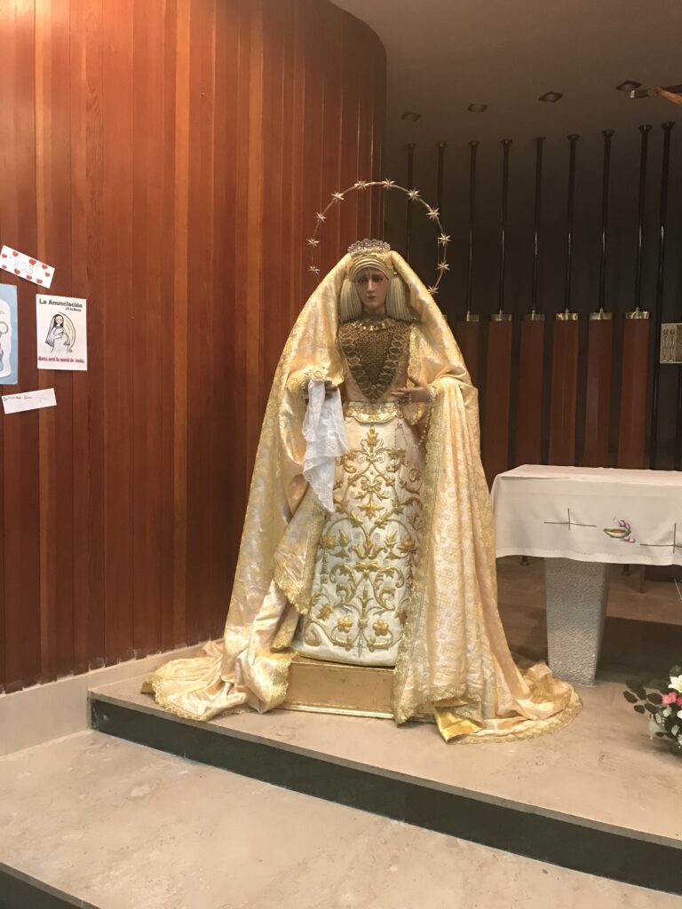Desde primeros de mayo, mes de la virgen María, que mejor escenario que la capilla de nuestro colegio preferido «La Anunciata» para acoger la figura de nuestra María Santísima de la Confortación, donde se va a encontrar mejor nuestra madre querida que rodeada de niños.