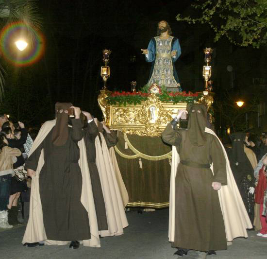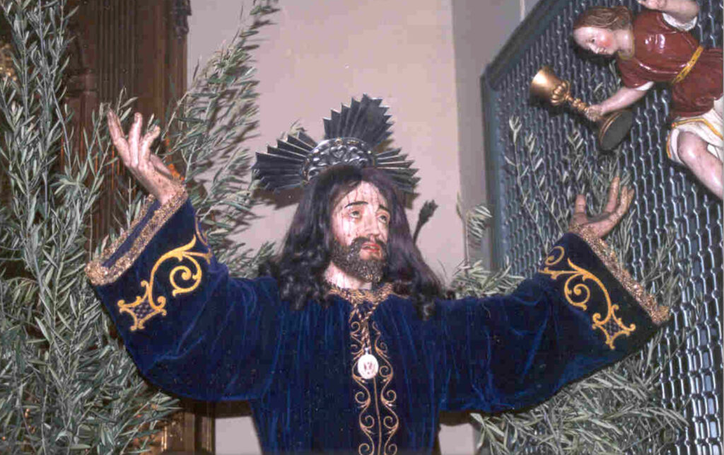 La Cofradía de Ntro. Sr. en la Oración del Huerto, procesiona por primera vez con la imagen de Ntro. Sr. de la Agonía en el Huerto de Jerusalén en la Semana Santa de 1983, esta imagen se encontraba en el Monasterio de las RR.MM. Franciscanas Clarisas de Santa María de Jerusalén de Zaragoza, talla de autor anónimo del siglo XVII, recientemente atribuida según estudio de D. Carlos Pardos al escultor Barbastrense Pedro de Ruesta fechada sobre 1630, debido al deterioro que muestra la imagen y la decisión por parte de las hermanas en la no restauración del mismo, se decide la construcción de una segunda imagen para su sustitución, esta decisión no causo el efecto deseado y en el año 2002 se encarga la construcción de una nueva peana, obra del tallista José Antonio Martínez de Horches (Guadalajara), estrenada en 2003, siendo esta la última salida procesional del Cristo de la Agonía en el Huerto de Jerusalén.