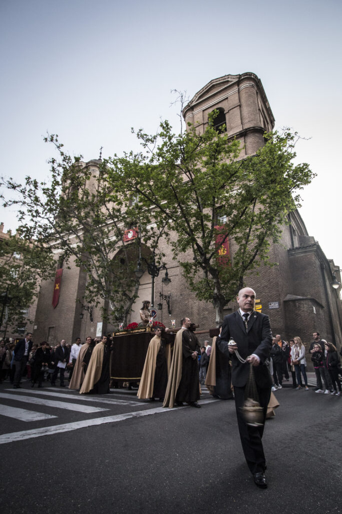 Desde la Iglesia de Santa Isabel de Portugal (vulgo San Cayetano) la Cofradía de Ntro. Sr. en la Oración del Huerto, se incorpora a la tradicional procesión del Santo Entierro que organiza la Muy Ilustre, Antiquísima y Real Hermandad de la Preciosísima Sangre de Nuestro Señor Jesucristo y Madre de Dios de Misericordia, con un amplio recorrido por la calles Zaragozanas.