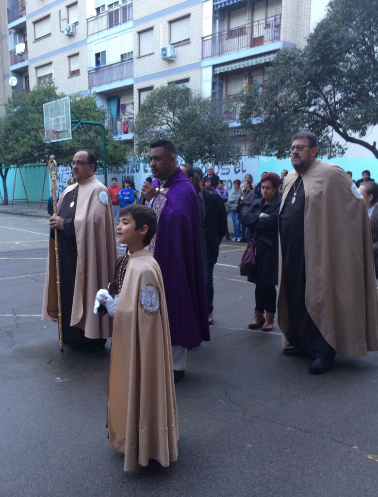 Un proyecto que nos ilusionaba enormemente, era la colaboración activa con un centro educativo, católico y cercano a nuestra cofradía, en el colegio «La Anunciata», encontramos ese hermanamiento que tanto habíamos buscado, siendo acogidos con un afecto y cariño especial. Una de las primeras ideas que surgió, fue crear un evento cercano y familiar, para el hermanamiento de ambas instituciones, de ahí surgió nuestro «Vía Crucis Familiar», procesión que se celebra en las instalaciones del Colegio «La Anunciata», quedando instaurado definitivamente como un acto más de la Semana Santa en la Cofradía.